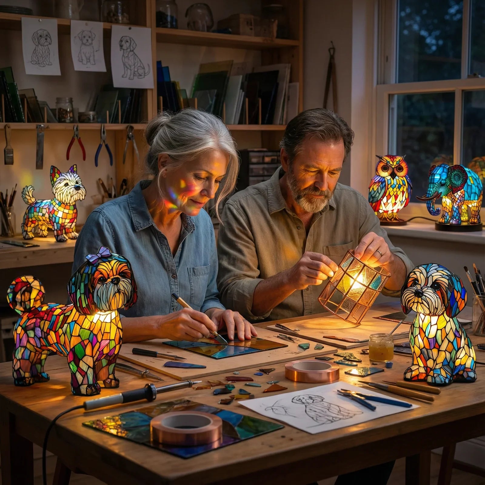 Fabriquées à partir de verre coloré de qualité et façonnées à la main, nos lampes apportent le caractère et l'éclat d'un art intemporel dans votre foyer — sans billet de musée nécessaire.